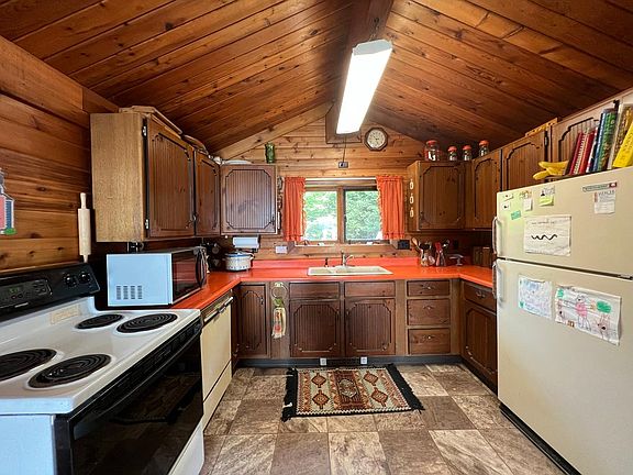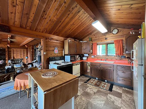 Very private and very attractive Pan-Abode Red Cedar Log home featuring 362’ of frontage on Little Pike Lake! Inside you’ll feel Northwood’s charm with the log walls, cathedral wood ceiling with large beams and a massive stone wood burning fireplace! So many wonderful waterfront views from the cozy dining area and the glass French door to the lakeside deck. 2 bedrooms, a full bath and horseshoe shaped kitchen complete the main level. Walk out lower level offers a 3rd bedroom, 2nd bath, office, laundry room and large rec room with woodburning stove on brick hearth. 2 car garage, lakeside storage shed, level approach to the water and southeastern exposure on this very quiet, peaceful lake! Plus, the home comes move in ready! All appliances, furniture, kitchen items, Brunswick pool table, lamps, wall hangings, garage tools, 2 canoes and 2 push mowers are all included!!