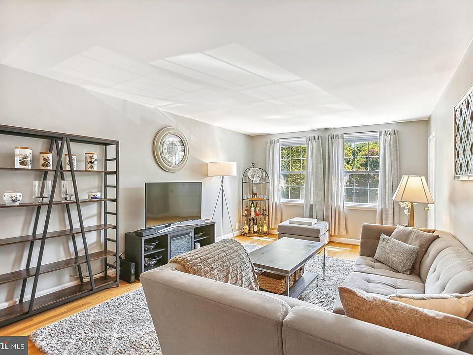 Gorgeous & RARE 3 bedroom, 2 bathroom Buckingham model home nestled in Fairlington Green! This light-filled home features gleaming hardwood floors, recessed lighting, new light fixtures, updated windows, & fresh paint throughout. The main level features a spacious living room with a large closet with new LVP flooring. The kitchen is accented with white soft-close cabinetry with modern pulls, granite countertops, subway tile backsplash, LVP flooring, & stainless steel appliances. The separate dining area features a nice view of the green space behind the home. Through a set of french doors, you will find a large hallway storage closet and a spacious primary bedroom with two large closets, one of which includes an Elfa organization system. A fully renovated bathroom with honeycomb tile flooring, porcelain-topped gray vanity with modern mirror & light fixture, a subway tiled shower with penny round tile detailing, & recessed lighting completes this level. The upper level features a large attic/utility space, a linen closet, a laundry room, & two bedrooms with a shared ensuite bathroom. The first upstairs bedroom features a closet with organizers, access to attic eave storage, & a sliding barn door to the bathroom. The second bedroom features recessed lighting, two closets with organizers, access to attic eave storage, & a sliding barn door to the bathroom. The updated bathroom is accented with LVP flooring, a white vanity, a new light fixture and mirror, & a sparkling white shower with automatic overhead light. The laundry room with LVP flooring, newer stackable washer & dryer (2020), & access to more attic storage completes this home. Other home features include a newer water heater (2020) & newer HVAC (2018). Community amenities include a pool, tennis courts, tot lots, walking paths, & MORE! Just steps from the Fairlington Farmers Market, Fairlington Community Center, state-of-the-art playground, & Utah Dog Park. Great location near I-395, the shops & restaurants at Shirlington Village, Del Ray, & Old Town Alexandria!