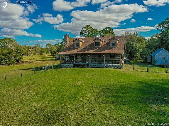 Enjoy true country living in this charming, quality-built log home on 4.6 acres just minutes from I-95 and Palm City. New Roof just completed in December 2020. Vaulted ceilings with beautiful wood burning fireplace, 2 guest bedrooms, and bonus loft space off the master suite. Tranquil and serene setting in this sought after area of Western Martin County. Room for a pool, garage, RV, tractors, or livestock for an agricultural exemption. Property is fenced and cross fenced. The area has many parks and recreation areas and just a short distance to city amenities.