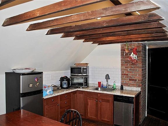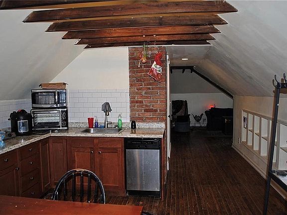 3rd floor walkup loft with stunning architecture, hardwood floors exposed brick, subway tile, and wood cabinet kitchenette. Perfect for a someone looking for a clean unique space in the heart of the popular Cedar-Lee Neighborhood in Cleveland Heights.