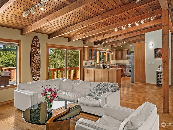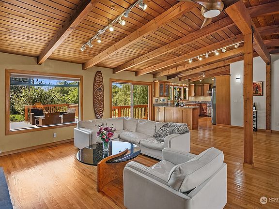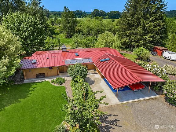 Mid-century Modern Rambler on 6 acres! The house and outbuildings are NOT in the flood zone. New 50year metal roof! Hardwood floors, new furnace. Chef's kitchen w/top appliances, granite counters, solid cherry cabinets, commercial 36"stove. Master suite w/California closet. Daylight basement w/double doors. Root cellar. 2020 Belize Spa. Established flower and garden beds (artichoke, asparagus). Fruit Trees (apple, pear, plum, and more). Blueberry bushes. Outbuildings include Barn- animal cover w/ power and heater, Kiwi fence for your horses. Fully insulated 840 sq ft office/shop -concrete floor, power, phone/internet, gas heater, garage roll door, w/separate driveway. Perfect for eCommerce business, car shop, workshop or easy rental income