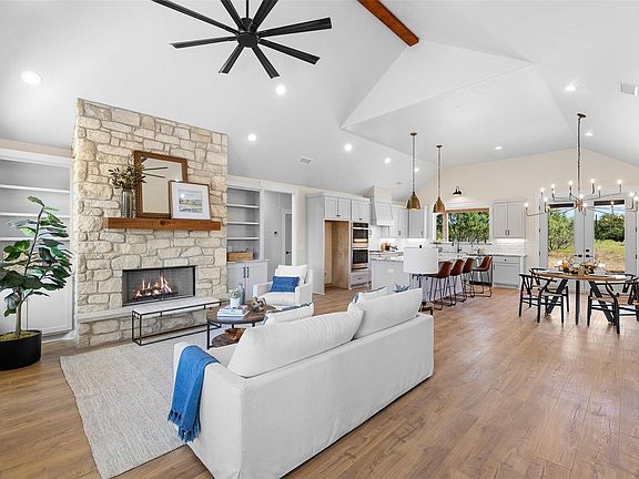 +/- 11.82 Acres with 1,966 SqFt ranch style home by Chollett Custom Builder, curated by Lacy & Co. Open-concept with Hybrid LVP flooring. The living area boasts a wood-burning stone fireplace. Spacious kitchen with stainless steel double oven, gas cook top, and island with eating bar & storage. Enjoy the view from the french doors off the dining area overlooking the covered patio. Separate dining area with decorative chandelier. Mudroom with durable cement tile flooring, pantry, sink & room for a freezer. Primary suite with a beamed ceiling, 2 vanities, soaking tub & walk-in closet with built-ins. The shower has a marble mosaic floor & blue tile accent wall & matte black Delta fixtures. 2 additional bedrooms with reach-in closets. Full hall bathroom with a blue tile surround & lots of storage. Small stock pond on site. Slightly sloped terrain creates scenic views. Ag valuation & perimeter fencing in place! Zoned for Caldwell ISD. Serviced by Bluebonnet Electric & Milano Water Supply.
