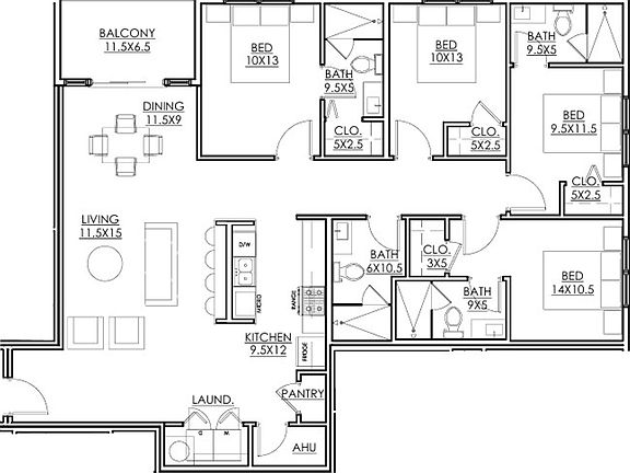 - Exterior features: Balcony, Flooring: Wood, No Carpet, appliances, condo, exterior lighting, modern finishes, new construction, open concept living-dining, private bathrooms, walking distance to campus