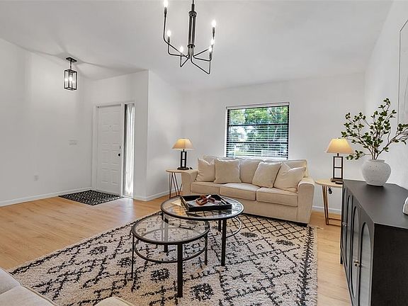 Welcome to 3252 Patton Street a turn-key, single-story ranch tucked away at the end of a quiet cul-de-sac. in the. This 3-bedroom, 2-bath home sits on a quarter-acre lot with mature landscaping and no HOA. The interior has been thoughtfully reimagined with a light, modern aesthetic. Wide-plank luxury vinyl floors flow throughout, complemented by fresh white walls and contemporary lighting. At the heart of the home, the chef's kitchen features soft-close white shaker cabinetry with matte-black hardware, sleek quartz counters with subtle veining, a deep stainless-steel sink with a pull-down faucet and a glass-shade pendant above. Stainless-steel appliances include a smooth-top range, matching hood, fridge, and dishwasher. A roomy pantry closet provides extra storage, while the adjoining dining area opens through sliding glass doors to the screened lanai for effortless indoor-outdoor living. The open layout continues into a bright living room anchored by a statement black chandelier and a large picture window. Vaulted ceilings enhance the sense of space, and the neutral palette offers a tranquil backdrop for any decor. Off the kitchen is a generous laundry room with a utility sink and access to the one-car garage. All three bedrooms are generously sized and outfitted with built-in closets. The primary suite enjoys a renovated en-suite bath and direct access to the lanai, creating a private retreat. A second full bath serves the two guest rooms. Outside, the 0.25-acre property provides a fenced yard with room for a pool, play area or garden. Mature trees offer shade and privacy, while the screened lanai invite you to relax with a morning coffee or evening drink. From this address you're about 3.5 miles to downtown Sarasota, 5 miles to Sarasota Bradenton International Airport and roughly 8 miles to Lido Beach. Public transit stops, grocery stores, restaurants, nightlife, are all within minutes. With its stylish new interior and central location, 3252 Patton Street offers an exceptional opportunity. Whether you're a first-time buyer, downsizer or investor, this move-in-ready home delivers modern comfort and Florida charm.