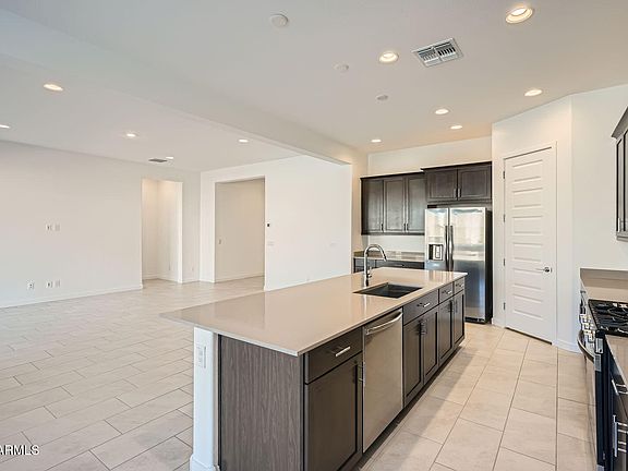 This single-level home showcases a private suite ideal for multigenerational living. The suite includes a one-car garage, separate entrance, living space, kitchenette, bedroom and bathroom. In the main home, an open floorplan allows for effortless transition between the Great Room, kitchen and dining room, with access to the covered patio through sliding glass doors. The luxe owner's suite is situated at the back of the home, while two secondary bedrooms are comfortable and private retreats. This home is complete with backyard landscaping!