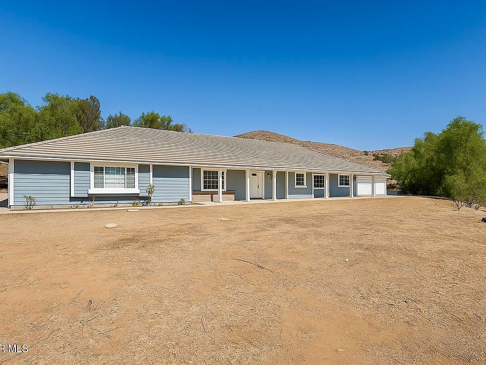 Outstanding ranch style view home on 2.59 acres featuring 4 spacious bedrooms, 3 bathrooms, an open kitchen flowing into the family room with a classic brick fireplace, beam mantle, and sliding dual-pane doors leading to a covered patio and outdoor kitchen area perfect for entertaining. The property offers central AC and heat, city water and power, A2 zoning for horses or other livestock, a separate laundry/mudroom with backyard access, and a converted 3-car garage workshop with 220v power and storage. A wide concrete driveway provides plenty of parking for RVs, boats, and more, while the expansive lot offers room for a pool, garden or play areas, all supported by a front, rear, and side-yard sprinkler system. Conveniently located just minutes from the 14 freeway, yet private and peaceful, this home is ready for your personal touches to make it truly your own. Schedule your private showing today and discover why this could be your next home. To help visualize this home's floor plan and to highlight its potential, virtual furnishings may have been added to photos found in this listing.