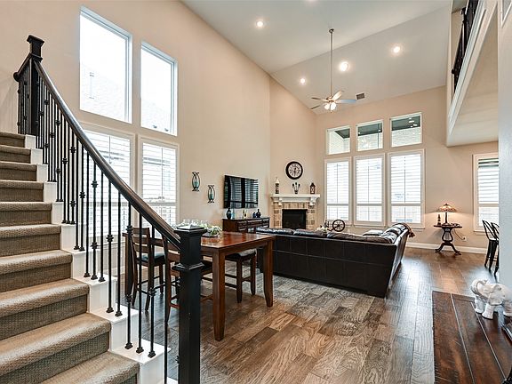 Located in the sought-after Mustang Lakes community and Prosper ISD, this stunning 2020 home blends style, comfort, and function. The open concept layout is filled with natural light from expansive windows and anchored by a spacious great room that flows into the dining area and gourmet kitchen. The chef’s kitchen features stainless steel appliances, gas cooktop, custom cabinetry, walk-in pantry, and a large quartzite center island that doubles as prep space and gathering spot. The first-floor primary suite is a retreat with soaking tub, glass walk-in shower, dual vanities, and a custom walk-in closet with direct utility room access. A private home office with French doors, media room, and secondary bedroom with full bath complete the downstairs layout. Upstairs, two additional bedrooms are joined by a large loft overlooking the great room—ideal as a playroom, study, or second living area. Outdoor living includes an expansive covered patio and a three-car garage offering space for storage, vehicles, or a workshop. As part of Mustang Lakes, residents enjoy resort-style amenities including pools, fitness center, tennis courts, lakes, trails, and a clubhouse for gatherings. This home offers convenient access to shopping, dining, and entertainment in both Celina and Prosper, with quick routes to the Dallas North Tollway. With thoughtful design, numerous upgrades, and a move-in ready condition, this home is an exceptional opportunity. See the full list of upgrades, walkthrough video, and inspection report in documents.