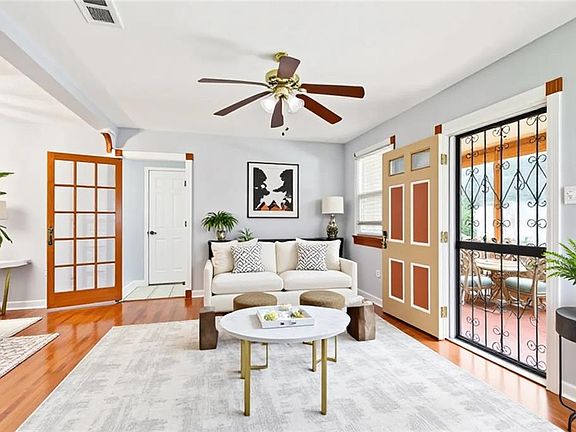 CHECK OUT THIS CHARMING CORNER LOT HOME IN MIDCITY FOR SALE! 2 BEDROOM, 2 FULL BATH GEM LOCATED IN THE HEART OF MIDCITY. THE PRIMARY BEDROOM HAS A PRIVATE FULL BATH AND WALK IN CLOSET. FLEXIBLE FLOORPLAN WITH A COZY LIVING ROOM PLUS A VERSATILE BACK ROOM GREAT FOR A FAMILY ROOM, SITTING AREA OR A ROOM TO FIT YOUR FAMILY'S NEEDS. THE KITCHEN HAS A BREAKFAST NOOK, GAS RANGE OVEN, MICROWAVE, REFRIGERATOR AND A STEP UP COUNTERTOP THAT OPENS TO THE BACK ROOM-GREAT FOR ENTERTAINING. ADDITIONAL FEATURES INCLUDE AN INDOOR LAUNDRY ROOM, NO CARPET, CENTRAL AIR AND HEAT AND AN ENCLOSED FRONT PORCH. THE HOME SITS ON A CORNER LOT WITH FRONT, SIDE AND BACK YARDS, A DRIVEWAY AND A DETACHED SINGLE CAR GARAGE. AWNINGS OVER THE BACK DOOR AND SELECT WINDOWS, NEW ROOF INSTALLED ON MAIN HOME & GARAGE IN 2022, GUTTERS AND PLENTY OF NATURAL LIGHT ADD EXTRA APPEAL. ENJOY PROXIMITY TO BUS STOPS, THE INTERSTATE, CITY PARK, THE FAIRGROUNDS AND DELGADO. WHETHER YOU'RE LOOKING FOR A PRIME LOCATION OR A HOME WITH GREAT FLOW AND CHARM, THIS MID CITY BEAUTY DELIVERS.