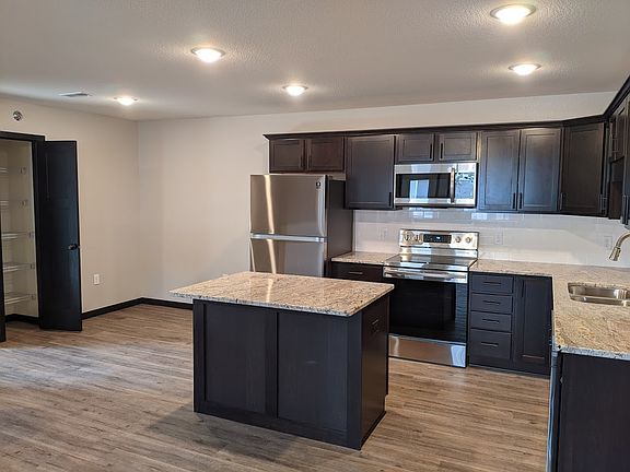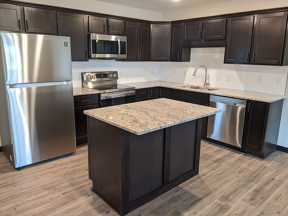 Upper; Espresso Cabinets This unit is located in our convenient Gateway Place apartment complex at the intersection of Gateway Dr and E. Hamilton Ave. Units offer granite counters, luxury vinyl plank flooring (some carpet in bedrooms) energy efficient appliances (all appliances included), large spacious bedrooms with some walk-in closets and an open concept living and kitchen room. Rent includes lawn care and snow removal. Tenants are responsible for all other utilities. Parking is an attached 2 car garage with a small parking driveway in front of that garage. Fits approximately 3 vehicles total. Other vehicles should park on the street. Upper units include a covered private balcony and lower units have a small patio available at their side door. Pets considered, with signed pet agreement. $100/month/pet rent and $100/pet deposit required.