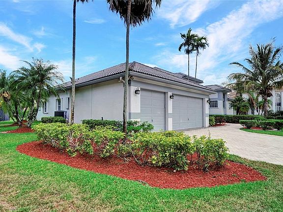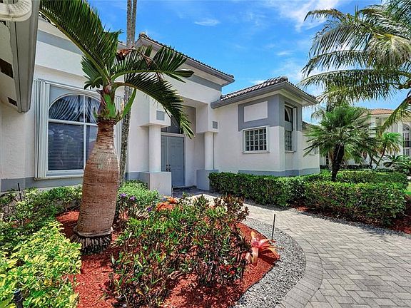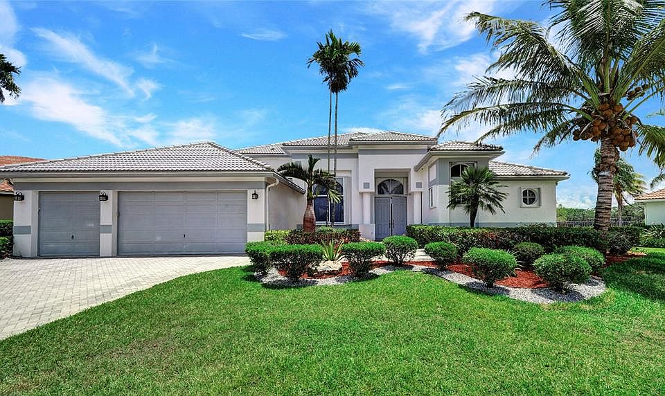 Nestled in the gated golfing community of Weston Hills, this hidden gem lies in the quiet neighborhood of Water Oak. The home sits on a waterfront, culdesac lot with no thru traffic. Amazing floorplan offers a huge paver driveway, 3-car garage, grand double entry doors, soaring ceilings, & a 3-way split bedroom layout. Primary suite includes walk-in closets & an ensuite bathroom w/jacuzzi tub, walk-in shower, & toilet closet. Entertain in the open social spaces where you can also access the screened-in pool area through convenient sliding doors. Enjoy the morning sun, outdoor living & captivating lake views from the pool deck. Tropical landscaping surrounds the home. Accordion shutters protect the home & deliver peace of mind. Embrace this home's potential to reflect your personal style.