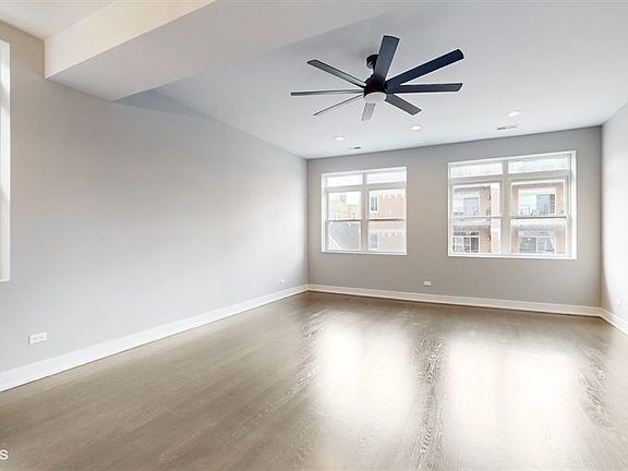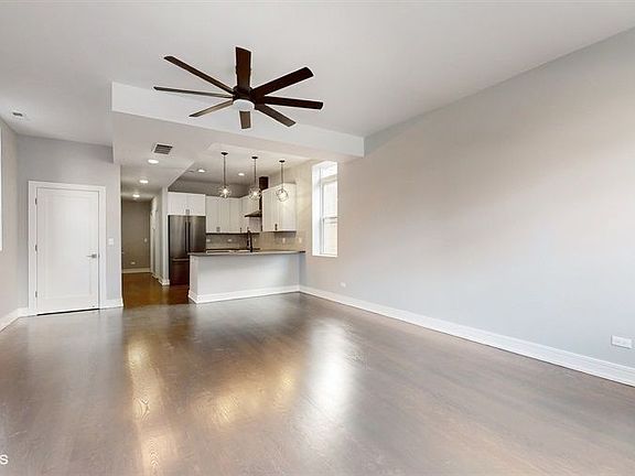 This Elston property was built two years ago, and the unit has been lived in by one tenant only. It's a beautiful unit with high ceilings, hardwood floors, upscale appliances and finishes. There a parking garage in the basement with a turntable system that allows you to pull in to pull, and turn your car on the turntable to exit.
