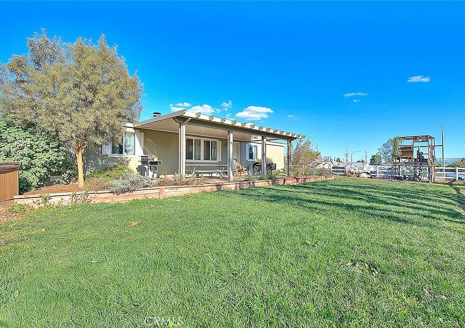 Back on the market! This property is a homesteader's dream! It offers a rural feel while still being centrally located near major freeways, shopping, dining, and entertainment centers. This fairly new manufactured home is on a permanent foundation and was built in 2017. It is situated on an ideal corner lot with just under an acre (.90) of land. With four bedrooms, there is plenty of room for everyone. The home comes with upgraded insulation to save you on energy costs. With a separate laundry room and a beautiful open floor plan this home offers a spacious and comfortable atmosphere to live on while enjoying your immense property. The possibilities are endless as there is substantial fencing in place for various livestock including cows, goats, pigs, chickens and more. A cow stanchion is present for milking cows. A 10x10 chicken coop and large run for the chickens is on the property. Despite all the activity on this property, there is still plenty of room left over for more gardens, orchards, horse corrals, or even an ADU. The 625 feet (25x25) detached garage provides an excellent amount of storage or space for a workshop. Additionally, there is a 10x10 square foot barn-style storage shed that includes upper level storage. Property also features a 2000 square foot garden, and specialty olive trees for making oil or snacking on. New leech lines are being installed next week. Do not let this opportunity pass you by!