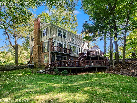 Welcome to One of Nottingham Forest’s Most Desirable Lots! Experience an “up north” feel right at home, surrounded by stunning wooded views and large open spaces. This exceptional property combines natural beauty w/ spacious, comfortable living. The inviting family room features vaulted ceilings w/ beautiful wood beams, large windows that frame the serene scenery, recessed lighting, & a natural fireplace. The space flows seamlessly into a large kitchen complete w/gorgeous wood cabinetry, an island w/ seating, & double doors that open to a wonderful backyard. Enjoy multiple outdoor areas, including a large patio and decks on two levels, w/ walkouts from the kitchen, family room, & lower level. The first floor offers generous living spaces filled w/ natural light, including a large living room w/ its own private deck/balcony. Upstairs, hardwood floors extend throughout the entire level, which includes 4 spacious bedrooms, two featuring built-in bookcases & shelving. A first-floor office provides a flexible space perfect for working from home, homework, reading, or TV relaxation, & could easily serve as a fifth bedroom if desired. The home features 2 beautifully updated full baths & 3 updated half baths, providing both comfort & convenience for family and guests. Additional highlights include a formal dining room & a large first-floor laundry. The lower level is a showstopper—featuring another fireplace, a craft area, a workout room, a half bath, & plenty of storage. Step outside to yet another deck and a truly exceptional backyard, perfect for entertaining, playing, and enjoying the outdoors. A gentle sledding hill along w/ a scenic ravine which flow along the side yard, while the property backs up to a wooded area filled w/ mature, beautiful trees that provide privacy and year-round natural beauty. With its warm character, and one-of-a-kind setting, this home offers the perfect balance of comfort, nature, & space to make memories for years to come.
