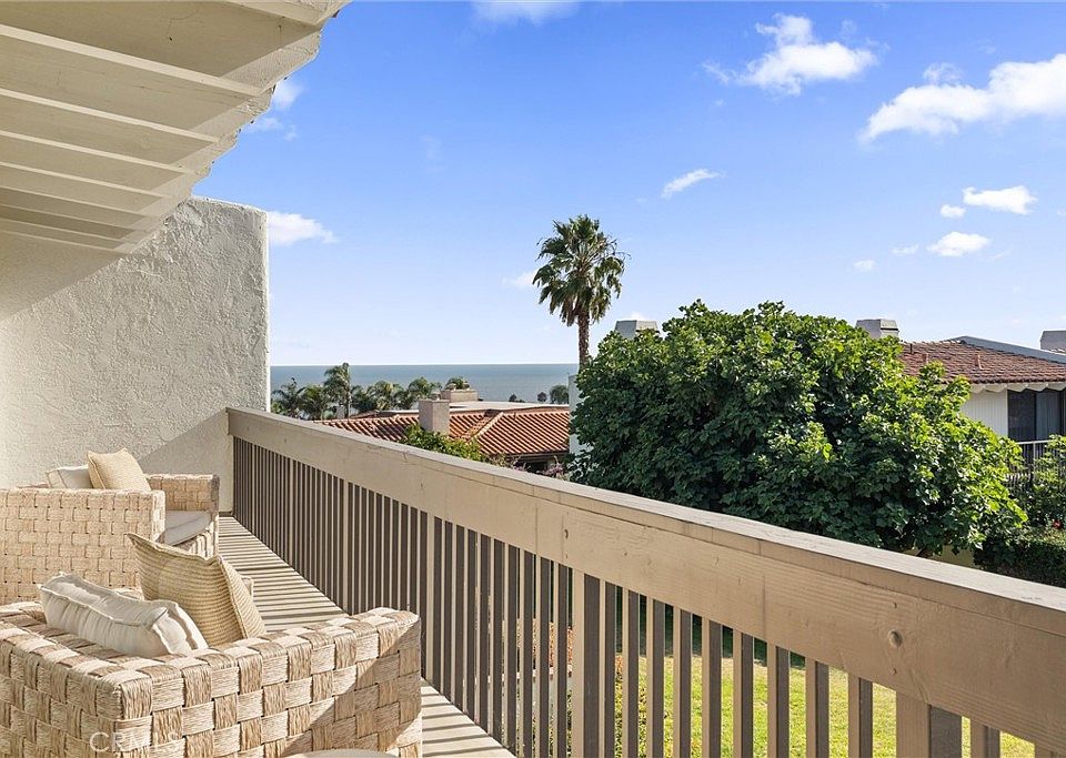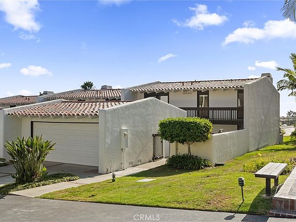 Welcome to your coastal retreat! This is a Single Family Residence, Planned Unit Development located in a private community of only twenty homes at the end of a quiet cul-de-sac. Enjoy resort-style amenities including two full-size tennis courts, a pool, spa, and clubhouse, all within walking distance to the ocean.This beautifully upgraded end-unit home features a fully remodeled kitchen with custom cabinetry, new countertops, upgraded appliances, and a spacious island that opens to the living room. The inviting living area offers a fireplace, bar/coffee nook, and direct access to a private patio. Upstairs, the primary suite showcases ocean, Catalina, and sunset views from a private balcony, a second fireplace, a walk-in closet, and a luxurious spa-inspired bath with dual sinks, jetted tub, and separate shower. The secondary bathroom has also been tastefully remodeled.