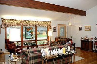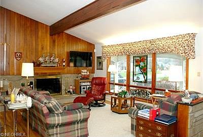 Beautiful ranch with an open floor plan, living room has vaulted ceiling, wood beams, wood floors, stone fireplace with gas logs. Living room opens to formal dining, wood floors, large window that overlooks a 10 x 20 deck. Remodeled kitchen, Kraftmaid Maple cabinets, newer appliances. Large master with Jack and Jill bath. Fourth bedroom currently used as an office (fourth bedroom has no closet). Two additional bedrooms and a guest bath complete the first floor. Large recreation room, knotty pine paneling and full bath complete the lower level. This home features a first floor laundry and many improvements-Furnaces and AC 2003, hot water tank 2013, roof 2009, and kitchen remodeled 2008, updated electric, new garage door and opener. Ohio Edison average is $65-$70 per month, Dominion gas budget is $112, 00 and water & sewer is $25.00. Taxes reflect Homestead that has been added. $500.00 carpet allowance will be given to replace carpet in one room.