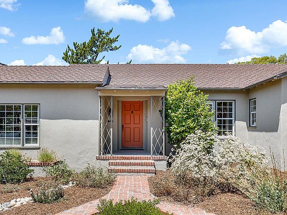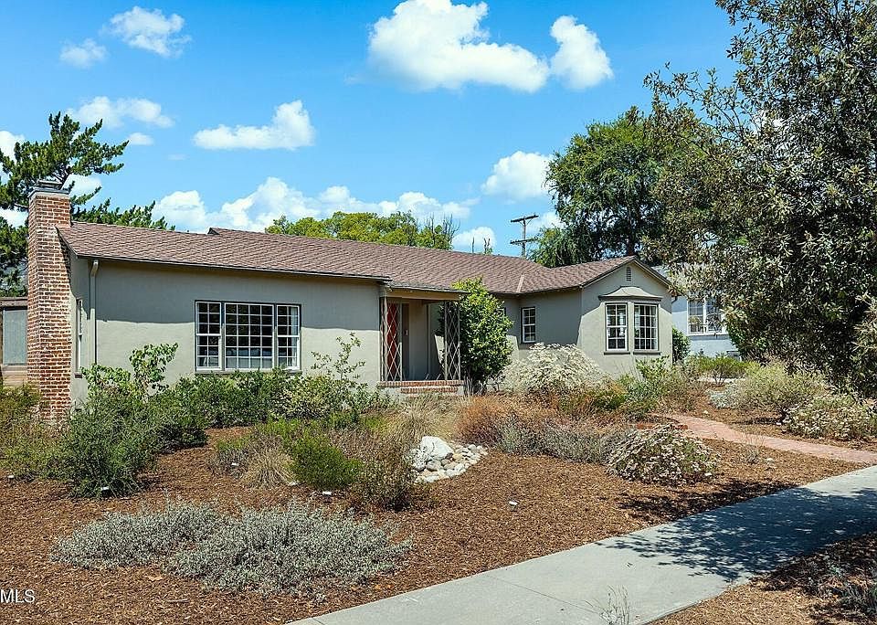 Calling all nature lovers and historic home aficionados - this eclectic, character-rich 1936 Traditional in Glendale's historic Montecito Park is a delight. Sited back from the sidewalk behind a handsome native garden, and complemented by views of the foothills in the background, this home whispers in a palette of earthy tones that echo its surroundings. A welcoming brick path with its unique navette-shaped center planter draws visitors in, past blooming Saint Catherine's lace to the home's covered front porch, flanked by original wrought iron lattice decorative grilles. Inside, gleaming white oak hardwood floors flow from the entry into a generous living room with decorative fireplace and beamed ceiling. Natural light flows through all spaces here, streaming in through large windows in the living room, formal dining room and kitchen. With its sage green cabinetry, custom-tiled countertops, backsplash and checkerboard floors juxtaposed with stainless steel appliances and accents, the kitchen strikes a perfect retro-modern balance. A sunny laundry room with pantry storage and 3/4 bath just off the kitchen are convenient, and benefit from a side door direct to the driveway...don't miss the tiny milk delivery door, a fun reminder of decades gone by. Three comfortable bedrooms on the west side of the home, one currently used as a den, enjoy flora-filled views of the backyard garden, and access to a second, artfully renovated bath with handsome plaster walls, walk-in shower and custom tile floor. Outside, find spaces to unwind and entertain in the shade in the covered brick patio, or meander in the native garden amongst the Monarchs and Western Bluebirds (they've made their home in this haven four years running!). Finally, behind the finished, conditioned two-car garage, find a large permitted creative bonus space - an additional 455 SF offering a multitude of uses. Ideal for a home office or studio, this would be a dream workspace...with the sliding doors open to the garden, birdsong and scent of sage in the air. Adjacent to all of the charming neighborhood restaurants (Mole at La Cabanita!), parks, wonderful schools and community in the area, plus easy access to freeways and shopping, this home embodies casual elegance and indoor-outdoor lifestyle in one of Glendale's best pockets.