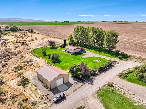 Are you ready for perfect sunsets? Just 4.5 miles south of Twin Falls, this solid split-entry home offers 2,464 sq. ft. of comfortable living space plus a shop and oversized carport. Inside, you’ll find two spacious gathering areas, a dedicated office/flex room, and four generous bedrooms. A centrally located wood-burning stove provides cozy, efficient heat, while the bathrooms are impressively large—one even offering direct access from a bedroom.The property sits on a beautifully maintained 2.65 acre lot, with mature trees, a garden area, and plenty of space to enjoy visiting wildlife. The expansive back patio, stretching the length of the home, is perfect for entertaining or soaking in the evening. Storage and hobby space abound with a 48 x 36 shop with power and an automatic garage door, plus an oversized carport with its own storage room. There are two buildable adjacent lots available MLS # 98962393 and MLS # 98962465 This home is filled with cherished memories and is ready to welcome its next chapter. C