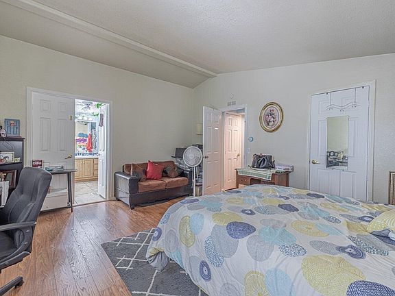 Situated in a delightful Palmdale neighborhood, you'll find an immaculately maintained mobile home boasting three bedrooms, two bathrooms, and a spacious 1,728 square feet of living space. Beneath the grace of a vaulted ceiling, the living room radiates with light and features an inviting archway that seamlessly transitions into the dining room. The kitchen is a culinary haven equipped with sleek stainless steel appliances, wooden cabinets, and an abundance of countertop space for meal preparation. A practical laundry area is thoughtfully incorporated, complete with storage solutions to keep things organized. The primary bedroom offers ample space and is characterized by a walk-in closet that accommodates your wardrobe needs seamlessly. The private bathroom is a retreat in itself, showcasing a soaking tub, a refreshing shower, and a separate double sink vanity, all of which contribute to a sense of luxury. With the convenience of two covered driveway parking spots, you'll find a perfect blend of practicality and comfort. Embrace the splendid amenities of the park, including a community pool and spa that invite relaxation, as well as a gated grassy expanse housing a playground for added enjoyment. This prime location offers proximity to the inviting William J. McAdam Park, a variety of dining options, Home Depot, markets, schools, and more, ensuring that every need and desire is catered to.