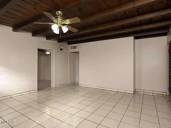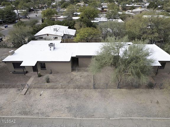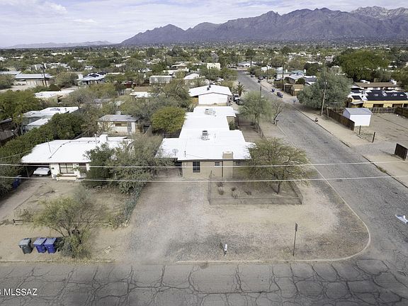 Seller will consider offers from $375,000 - $400,000. Two Charming Units on an over 10,000 sq ft lot within 10 minutes of the University of Arizona! Beamed ceilings, great storage, separate parking and laundry areas make this fully fenced property unique. Larger unit features brick fireplace in living room and a large bonus room has additional closet space off the primary bedroom. Both units have updated kitchens, tile floors and some original features. Between the units sits a 250 sq ft storage space/workshop currently set up to be part of the primary site. This clean and move in ready, zoned R2, property presents as Duplex or a Single Family Home with ADU. Great for multi-generational living or as a rental investment. Sold AS IS.