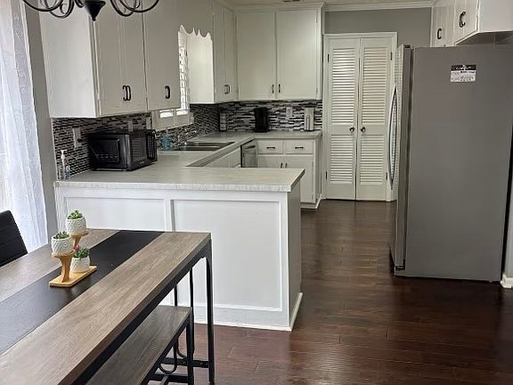 New paintNew flooringLarge patioLarge drivewayLarge dining areaLarge built-in bookshelfBeautiful backsplash