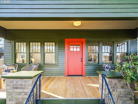 Welcome home! Start your day—or wind it down—on the amazing covered front porch, the perfect spot to sip, sit, and get to know your neighbors. And yes, the inside is just as charming. This beautifully refreshed 3-bedroom, 1-bath home is filled with thoughtful updates, including new interior and exterior paint, refinished fir floors, quartz countertops, remodeled kitchen and bathroom and rejuvenation lighting. Working fireplace with new firebox, sleeve and flue! The upstairs offers a wonderful private retreat, ideal for guests, a home office, or a versatile flex space. The spacious basement brings even more opportunity—imagine adding a second bathroom, a bonus room, or creating the perfect hangout space. Outside, the large fully fenced corner lot features brand-new landscaping, a brick patio, and plenty of room to add a garage or carport. Conveniently located near grocery stores, shopping, and restaurants, this home blends comfort, style, and endless potential. [Home Energy Score = 3. HES Report at https://rpt.greenbuildingregistry.com/hes/OR10225473]