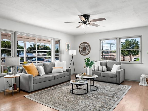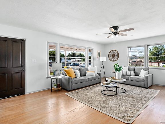 Nestled in the heart of Lemon Grove, this custom-built ranch style home offers the perfect blend of classic charm and modern comfort. Crafted with enduring, termite-resistant redwood, the residence boasts stunning hardwood floors in the living areas and bedrooms, while the kitchen and bathroom feature updated luxury vinyl plank (LVP) flooring. The kitchen and bathroom feature eclectic touches that infuse this home with character and vintage allure. Additional updates include fresh paint throughout and new ceiling fans. The kitchen is a culinary haven with newer appliances, including a gas range, and opens seamlessly to the living space. At the rear, a detached 2-car garage offers parking or the possibility of a workshop. Low maintenance landscaping in the expansive backyard creates potential for an ADU or a tranquil garden area. Also includes fully-owned solar and alarm system. Situated just under 10 miles from downtown, with easy freeway access and proximity to schools, parks, dining, and shopping, this home perfectly combines convenience with charm. Don't miss the chance to own a slice of Lemon Grove paradise - schedule your private tour today!