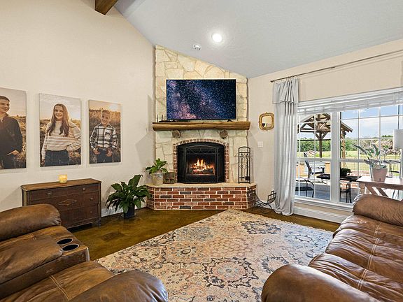 Welcome home to East Texas. Tucked behind a gated entrance just outside of Gilmer and located within Harmony ISD, this custom-built home offers the perfect blend of privacy, charm, and space to live, work, and relax. Built in 2013 and situated on 7.19 acres with a small pond, this thoughtfully designed home features three bedrooms, two bathrooms, and 2,016 square feet of inviting living space. Inside, you’ll find an open-concept layout with vaulted ceilings, stained concrete floors, and an Austin stone wood-burning fireplace that instantly gives the living room a warm and welcoming feel. The split floor plan offers added privacy for the spacious primary suite, which includes a beautiful tray ceiling, a built-in safe room, and a spa-inspired ensuite bath with a tiled walk-in shower and double quartz vanity. On the opposite side of the home are two comfortable guest bedrooms and a full bathroom with quartz countertops and a shower/tub combination. The kitchen is filled with personality and function, featuring sealed concrete countertops, a travertine tile backsplash, and rich custom-stained cabinetry that continues throughout the home. A large walk-in pantry offers ample storage, and just off the kitchen is a cozy breakfast nook with bay windows that fill the space with natural light. There’s also a formal dining area that makes entertaining easy, whether it’s a quiet breakfast or a lively gathering. From the carport, you’ll enter into a mudroom and laundry area designed for everyday convenience. A separate utility room off the carport provides even more storage or workspace. Out back, the covered patio and fire pit overlook a gently rolling pasture dotted with trees, creating the perfect spot to enjoy your morning coffee or unwind at sunset. With room for animals, gardening, or even building a shop, this property offers true East Texas living with endless potential.