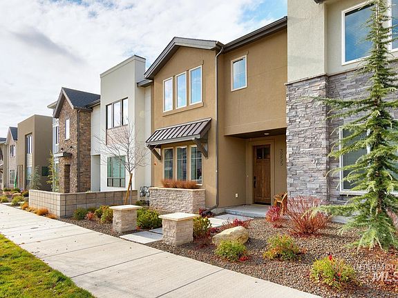 Welcome to this stunning 3-bedroom, 2.5-bath home in the heart of Harris Ranch, one of East Boise’s most desirable communities. With quick access to downtown Boise, shopping, wildlife, the Boise River, Greenbelt, and miles of walking and biking paths, this location perfectly blends convenience with the outdoor lifestyle. This light and bright 2-story home offers an open 2,100 sq. ft. layout with large picture windows flooding the space with natural light. The spacious living area features a striking stone accent wall with built-in cabinetry and floating shelves, plus a built-in tech center/office is ideal for work, hobbies, or extra storage. The beautifully designed kitchen includes granite countertops, a full tile backsplash, stainless steel appliances, and a 6-burner industrial range. The powder bath also features a stylish stone wall. Upstairs, the generous primary suite includes quartz countertops, tile flooring, a full tile shower with built-in bench, and a Euro-glass door. Two additional bedrooms and a full bath complete the upper level. Enjoy the outdoors on your spacious private courtyard or relax on the inviting front patio. The 2 car garage includes an attached 10X10 shop space for storage or projects. A true East Boise gem with modern style, natural light, and unbeatable access to the Treasure Valley’s best amenities.
