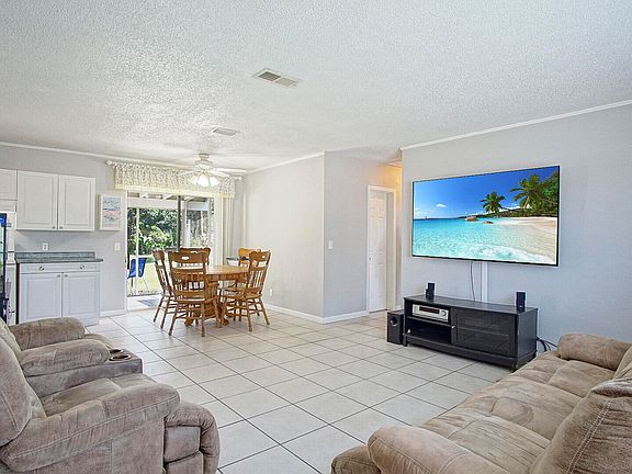 Perfect for Family, Investment, or VRBO in this highly desirable location, Club Med Sandpiper. The property lends much privacy backing to the golf course. This cute bungalow has 2 bedrooms, 1 bath room, open living and dining area with a screened back patio leading to the large backyard with buffered trees on the back property line. Tile through out the house, freshly painted main living area, charming galley kitchen accessible to the laundry room. (W &D do not convey). 2016 Hot water heater. Natural gas for the hot water heater and water. Can be hooked up for gas stove. Situated between the St. Lucie River and beautiful beaches, you are centrally located to highways, restaurants, shopping, and great schools.