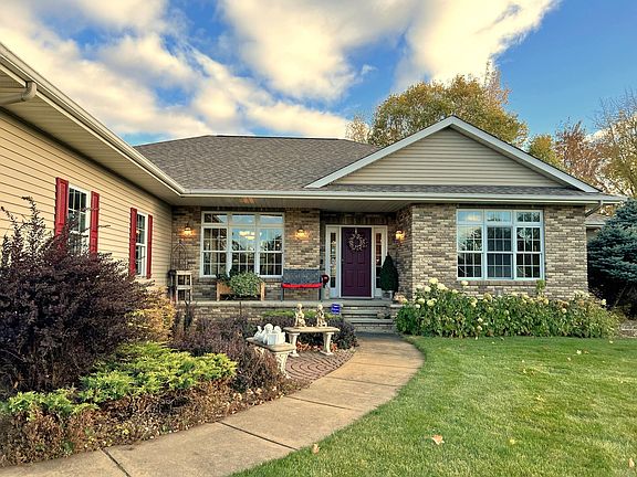4 bedroom, 3 bath walkout rambler located on a beautiful 3.32 acre lot in area of homes on small acreage. 3 car attached garage and 2 car detached garage, plenty of room for gardens, numerous perennials, mature trees and scenic surroundings. Open main level living with vaulted great room and gas fireplace, formal and informal dining rooms, spacious kitchen, laundry/mud room and 1/2 bath. Primary bedroom suite features large walk-in closet and private full bath. New walk-in/sit-in shower recently installed plus there's a whirlpool tub and double sinks. Den/office can also be used as a second bedroom. In the lower level, enjoy cozying up to another gas fireplace in the walkout family room, a built-in hutch, 2 more bedrooms, full bath and a large cedar lined storage room that would be a great exercise room or play room. Fantastic location and excellent curb appeal!! Country living yet convenient to shopping, retail, winery, restaurants, medical facilities and more.