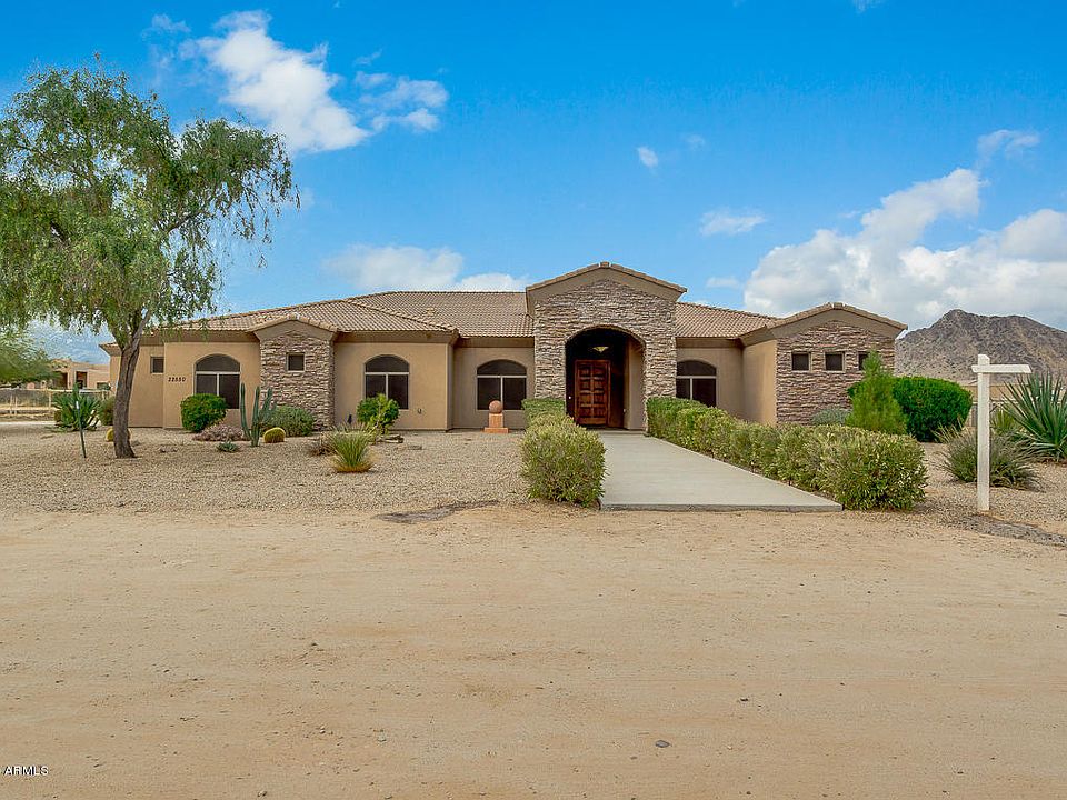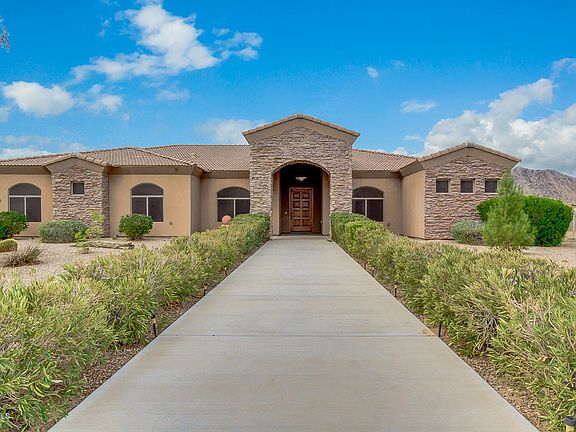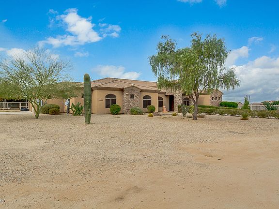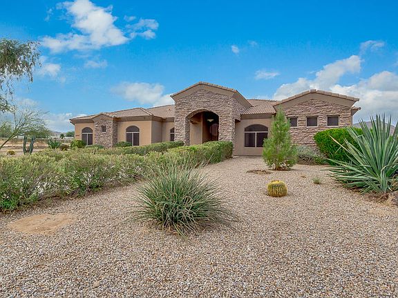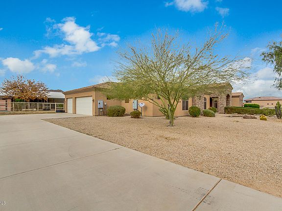 Come and see this stunning 4 bed, 3 bath property now for sale in Queen Creek! Includes 2 parcels for a total of 2.5 acres. Perfect for horses, and featuring desert front landscaping, 3 car side garage, formal dining and living areas, elegant light fixtures throughout, designer paint, and much more, you simply won't believe your eyes! The luxurious kitchen offers staggered cabinetry, a pantry, granite countertops, tile backsplash, wall oven, and a lovely island complete with a breakfast bar. Inside the grandiose master bedroom you will find a private exit, a spacious walk-in closet, and a full bath with double sinks, not to mention separate tub and shower. Also including a cozy backyard patio perfect for spending a relaxing evening, this home simply has it all! Schedule a showing today!