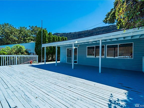 Blue Lake Waterfront living at its best. Charming cottage style home w/ enormous back deck overlooking lake w/ both covered and uncovered areas. Perfect location to soak in stunning lake and basalt cliff views after a busy day enjoying the amazing recreation right out your back door. Room for entertaining, BBQ'ing or just relaxing. Open concept interior w/ light and bright living. Absolutely spotless inside and out. Amazing views from every window. Lawn gently slopes to 50' of lake waterfront.