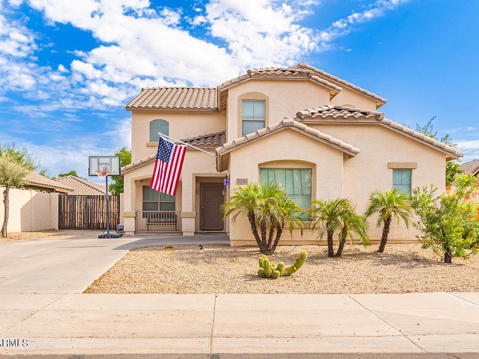 Have you been looking for a true 5 bedroom 3 bath home? Wait no more! There are 3 secondary rooms upstairs along with the Primary which has a balcony and then a bedroom with great closet space and full bathroom on the first floor. Ample living and dining space! Surround sound system in the living area off the kitchen. Room for an eat in kitchen... Such a great open floorplan. Outside you can relax on the full length back patio and enjoy the mature landscaping. Plenty of space on the side yard which has an RV gate and don't miss the 2.75 garage space. The location offers shopping at San Tan Village; Costco; grocery stores in all directions; Discovery Park and the Gilbert Regional Park just a short drive away.
