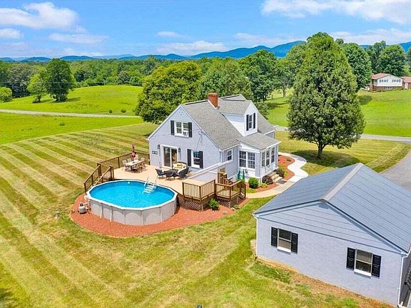 You must see this beautiful 3 bedroom one bath home situated on 1.23 acres of rolling hills! With remodeled kitchen, stainless steel appliances, beautiful quartz countertops/backsplash and spacious dining area you will love preparing meals in this kitchen! There are wood floors throughout with a small sunroom at the side entrance. New replacement Tilt-in windows and the full bath has been remodeled! The spacious deck and wonderful above ground salt water pool (4ft, 15x24) area with serene backdrop! The unfinished lower level includes laundry and plenty of room for storage. The master bedroom is on the main with two additional guest bedrooms upstairs. The garage space is ample! One detached 24x24 garage and workshop with new roof (2020) and detached 24x41 garage with room for 4 cars! Minutes to Smith Mountain Lake and convenient to Roanoke and Lynchburg. Hurry this lovely quaint home in this serene setting will not last long!