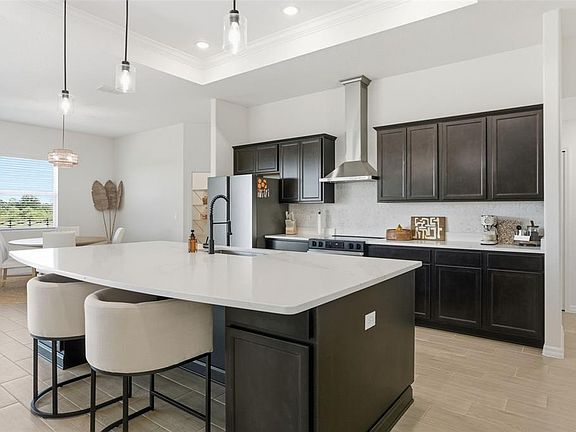 Covered lanaiQuartz countertopsExtra mini masterGorgeous quartz countertopsBeautiful board fencingOpen floor planStunning upgraded kitchen