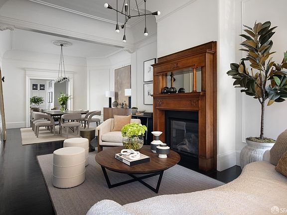 Blending historic Victorian architecture with modern lifestyle amenities and flexibility, this c.1891 Pacific Heights home offers modern finishes while retaining scale and volume and underwent a down-to-the-studs 2007 renovation including seismic upgrades with added steel beams, sheer walls and a concrete foundation. The 4 bedroom, 4.5 bath home is immediately captivating, with 13' ceilings on the main level offering a desirable kitchen/great room with walk-out yard, and a formal living and dining room that showcase iconic Bay windows and Victorian moldings. Upstairs, the primary bedroom features 10' cove ceilings, built- in bookshelves and outlooks to downtown. Two additional bedrooms, a hall bath, and laundry complete the level. Added lifestyle amenities include an upstairs family lounge, office, rooftop deck and a 2-car garage with EV charging. The lower level of the home is a perfect fifth bedroom or a retreat for guests, with a separate entrance, kitchen, and full bath. Centrally located on the border of Pacific Heights and Presidio Heights, the residence is only minutes away from the recreation and amenities of The Presidio, many of the city's top schools, and is an easy stroll to Sacramento Street.