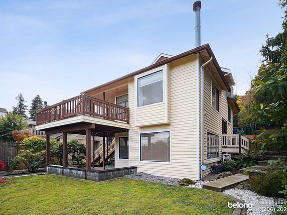 Embrace elevated living with this light-filled, corner-lot retreat perched atop Magnolia, offering breathtaking panoramic views from both the spacious living room and an oversized private deck. With over 2,360 square feet, this 3-bedroom, 2.5-bathroom home is designed for comfort and flexibility. Classic wood finishes bring warmth throughout, while modern updates make the kitchen standoutstainless steel appliances, ample counter space, a gas cooktop, and a double oven to inspire culinary creativity. The top-floor primary bedroom comes complete with a freshly refinished en-suite bathroom that features a luxurious soaking tub and a jetted tub for ultimate relaxation. Two additional bedrooms on the lower level share a full bath, with a convenient half bath on the main floor. A versatile media or bonus room provides extra space for entertainment, work, or guests. The home is thoughtfully equipped with a two-car garage, efficient gas heating, and electric air conditioning, ensuring year-round comfort. Outside, enjoy sunrise views of the Cascade Mountains from your east-facing deck, a charming front yard, and a private patio perfect for gatherings. Situated in a quiet yet highly connected neighborhood, you'll be steps from Magnolia Village's delightful restaurants, shops, and cafes. Quick access to top employers, downtown Seattle, and the University of Washington adds to the convenience, making this a rare opportunity for those seeking both tranquility and accessibility.