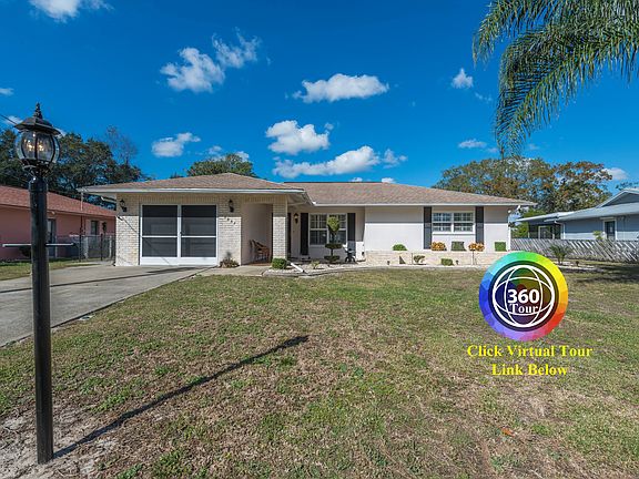 Don't miss this one! This lovely home is located close to schools, shopping, and dining. Well-manicured landscaping in the front is just the beginning. Irrigation well for underground sprinkler system. New garage door opener with controls. All new Pella windows all through the entire home letting in natural light, and Plantation shutter for a finishing touch. A flowing floorplan and new hunter ceiling fans in every room to keep things comfortable. The new hot water heater 2016. 18' porcelain tiles cover the living and wet areas for easy maintenance. Plush carpeting in the bedrooms along with plenty of closet space. Kitchen has Stainless steel appliances and is open to a bonus family room with views of the pool area. Master bedroom accommodates a large master bedroom suite. Separate vanity area is provided before you reach the connecting master bath. Calling all pool lovers, this home is for you! The back-porch area was built for entertainment, 350sq.ft. of it! Florida room has vinyl windows that open up to screens to let the breeze blow through. New pool pump and thick vinyl liner installed for the pool. Backyard is completely fenced in with vinyl fencing. Storage shed in the back for extra space. This home must be seen to be appreciated. Come View today!