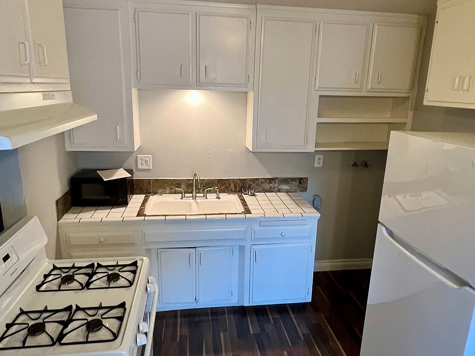 Freshly painted home with new refridgerator ,a stove and oven , garbage disposal , washer and dryer hookups , yard , 2 off street parking spots , very quiet neighborhood . Ceiling fans in every room with wall heating and AC unit .including a gated patio/yard space with a cemented area and a dirt area . Bathtub/shower combination. Owner pays for water , tenant is responsible for electricity and natural Gas consumption . No smoking . No dogs .