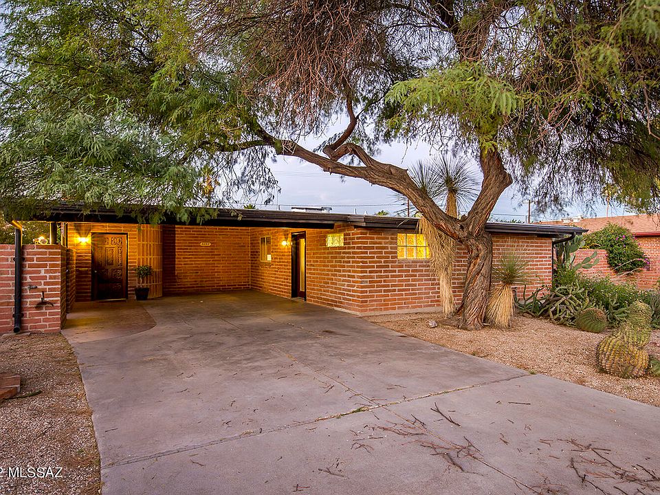 Ranch style, 3 Br/ 2 Bath, 1 block to UofA bike path. Expansive, remodeled kitchen with custom, cherry cabinets; composite countertops; stainless steel appliances; wine rack. Travertine & slate floors, marble fireplace in the great room which opens to large backyard with a ramada (perfect for relaxing or eating), separate firepit; not very visible masonry storage bldg. fenced off in the corner of the backyard. Plenty of space for a pool or guest house. Brs. have cedar closets. Built in cabinets in laundry rm. Walk or bike to restaurants, spas, Whole Foods, etc. Quiet street ends in a T before Country Club.