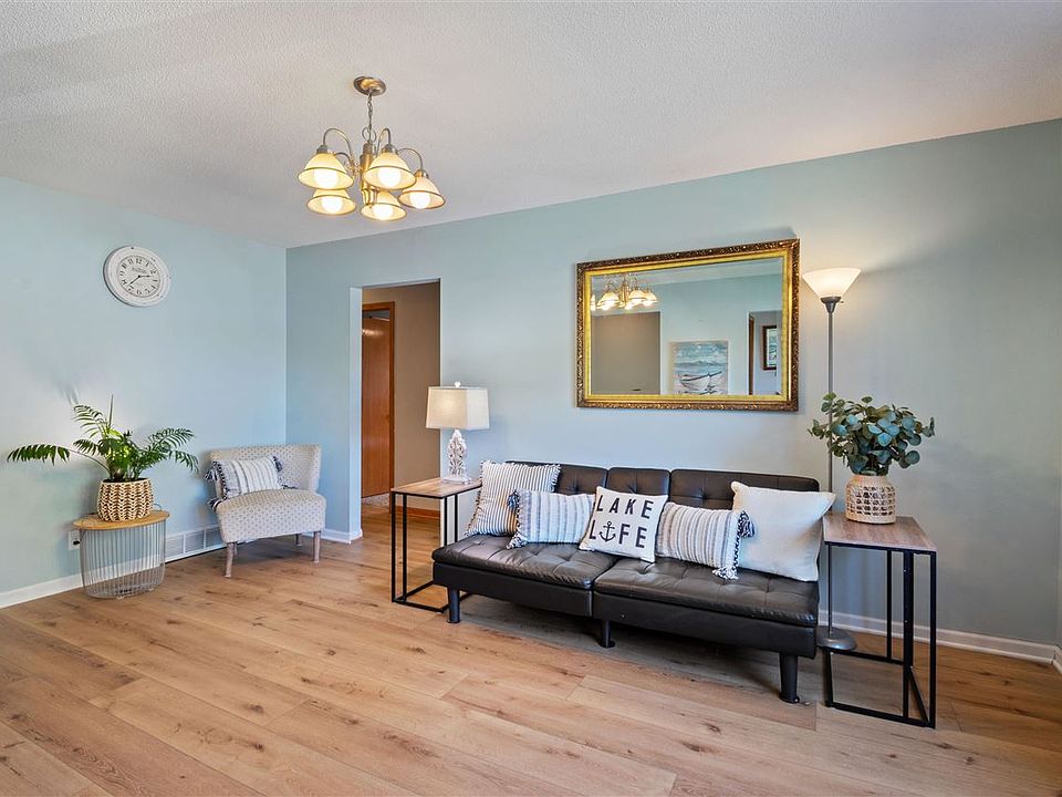 Fall is here—the perfect season to find your new home near the lake! This 1,726 sq ft ranch offers 3 bedrooms and 1 full bath on the main level. The welcoming living room features a large picture window and brand new LVP flooring(Sept 2025) that flows into the hallway. The kitchen, complete with stainless steel appliances, opens to a spacious deck and backyard—ideal for crisp autumn evenings and weekend gatherings. The finished basement expands your living space with a rec room, non-conforming 4th bedroom, oversized 2nd bath, laundry, and plenty of storage. A 2-car garage adds convenience, and with the lake and scenic walking trails just minutes away, you can enjoy every season to the fullest from this cozy home base.