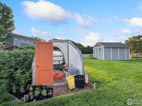Land, privacy and peace nestled into rural Windsor to enjoy the Colorado lifestyle with stunning sunrises over 7.53 fully fenced acres, a koi pond, raised garden beds, greenhouse, potting shed, spacious chicken coop and a 1,200 sq ft shop by Steel Structures of America includes a 14-ft RV door, a 5" concrete floor, plus a 560 sq ft lean-to. Coveted Willow Springs Estates has a community well for the gardening and a bridle trail for the horses. Beautifully updated home offers 4 bedrooms plus a flex room, 4 bathrooms, and a finished walk-out basement with space to design your wet bar, theater area, or gym. The remodeled kitchen features stylish quartz, gas cooktop, and large island. Luxurious primary features ample walk in, modern ensuite wet room. Acreage allowance for 8 animal units make this property ideal for hobby farming. HOA includes non-potable water for affordable irrigation. This is more than a home-it's a lifestyle!