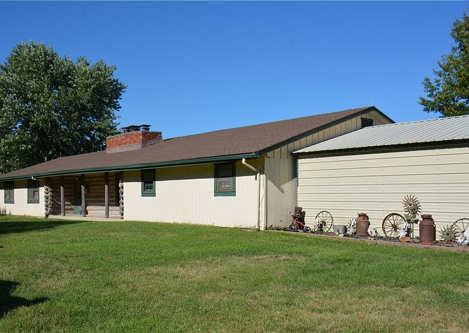 Location, Location, Location, REAL Log Ranch home on 76 acres with Paola address. Barn 30X70’, outbuildings, fenced with two ponds, currently in hay, and pasture for cattle and horses, has site for potential oil wells, property could be subdivided, and has over 1200 ft of road frontage. Circle drive, with huge shade trees, creek runs thru North corner of property and there is large trees and woods on back of property. Large Corn fields border this property so the hunting might be awesome…Chickens, cat, dogs, huge garden spot, welcome to the country! All measurements are approx.
