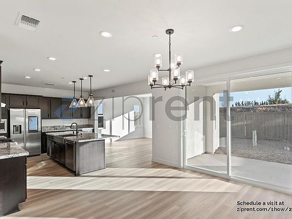 Welcome to your dream home at 3258 Jake Street, Tracy, CA 95377. This stunning two-story residence offers a perfect blend of modern elegance and functional design. As you step inside, you're greeted by a spacious foyer leading to an open-concept living area, filled with natural light from large windows. The gourmet kitchen is a chef's delight, featuring sleek dark cabinetry, granite countertops, and state-of-the-art stainless steel appliances. The adjacent dining area and living room provide ample space for entertaining, while sliding glass doors open to a covered patio, perfect for outdoor gatherings.
