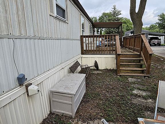This affordable home has a private deck with stairs front and back. It has a small private yard large enough for an outdoor set of table, chairs and umbrella to relax. Parking in your private driveway for two cars. An outside storage shed.