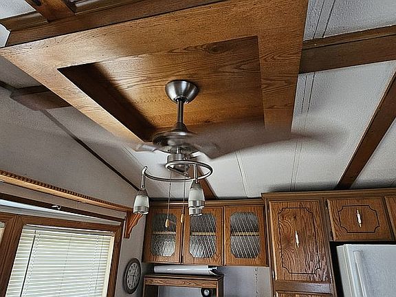 Its affordable, own your own home. The kitchen has floor to ceiling windows in the front for the seasonal sun and room for a table. Lots of cabinets with a side desk area tucked in. Newer appliances. It's an open floorplan with higher ceilings in the living area. The wood gives the home a warm feeling but can be painted if you prefer the cooler look.