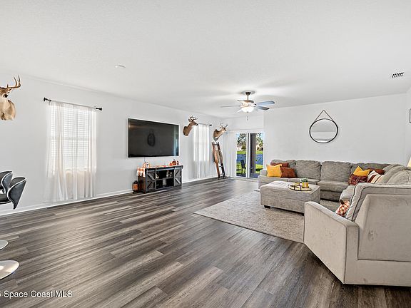Waterfront home in the primer Indian River Preserve golf course community! This home features 1735 sqft with 3 bedrooms, 2 bathrooms, 2 car garage, on a waterfront lot. Inside features stainless steel appliances, vinyl flooring in the living area, and oversized master bedroom. The outside features a covered patio overlooking pond, perfect for enjoying the sunrises and wildlife this community is known for. You can enjoy everything this community has to offer from the golf course, walking paths, club house, and fishing from your backyard.