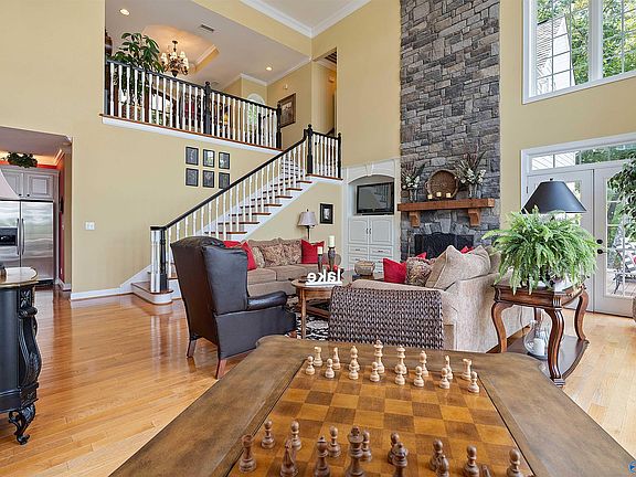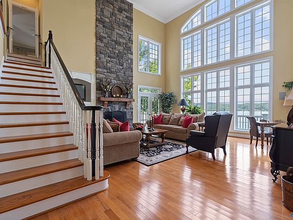 BELOW APPRAISAL VALUE! Luxury lakefront property has 3.12 acres, 6 bedrooms (sleeps 16), 5 baths & fully customized! This European estate features oversized rooms w/4 gas fireplaces, coffered & beam ceilings, multiple dining areas and 20+ ft windows. Entertaining is easy, from the screened porch to the Family room w/ "Pub" bar & wine room/storm shelter. Outdoor gatherings are just as easy w/ multiple decks, firepit, covered outdoor kitchen w/ lounge area, gas FP & lake fed 90 ft waterfall. There is an att garage/workshop w/2 bays, det garage w/3 bays & unfinished space above for another future suite if needed. Apprx 482' of shoreline (>1/2 developed) & 20ft+ water year round.