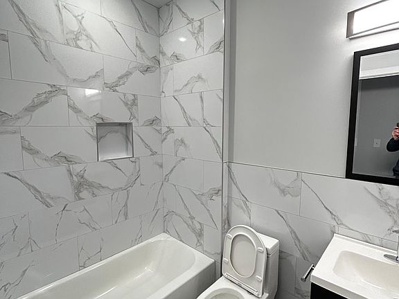 High-end finishesQuality finishesComfortable layoutsClean modern tileworkSleek flooringFull-sized washer and dryerModern fixtures
