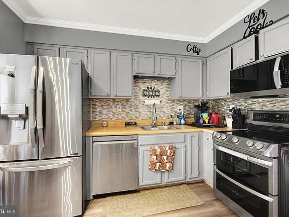 Welcome home to your lovely garage townhome with 3 bedrooms, 2 full bathrooms, and a rare 2 half bathrooms! Located in the Crowne Meadows Community, this beauty features a bay window, stainless steel appliances, a tiled backsplash, LVP flooring, crown molding, chair railing in the dining area, a fireplace, new carpet, fresh paint, nicely sized rooms, and a finished basement perfect for entertaining. The large master bedroom has vaulted ceilings and an en suite bathroom. Enjoy your morning coffee or tea on the spacious deck that backs to an open space and trees creating a gorgeous view. The backyard is fenced-in providing privacy and maximum enjoyment. The HWH was replaced in 2021 and the HVAC in 2018. You will be conveniently located 3 miles from the DC line, near Metro Stations, Community Centers and Parks, and I-495. Now, all you have to do is move in!